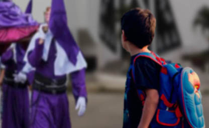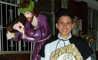 Me apasionaba ir a la Iglesia, especialmente en Semana Santa, en exclusivamente cuando sacaban algún santo en procesión. Pero me marcó el hombre de túnicas moradas, con la cruz a cuestas y una mirada de reflexión, que no es hacia el cielo como la mayoría de imágenes; dicha imagen mira la tierra, mira desde su condición de dolor, JESÚS NAZARENO, era el referente de mi vida; pero al ver los encapuchados, la primera vez casi me muero del susto, era pequeño, lo extraño era que ese miedo me gustaba, la segunda vez me causa temor y curiosidad, luego me explicaron que eran seres humanos que ofrecían penitencia y seguían a la imagen que me apasionaba. Fui creciendo hasta llegar a mi adolescencia con la misma pasión que me identificaba, y di apertura a seguir al nazareno más de cerca a llevar con él la cruz desde un sentido simbólico.