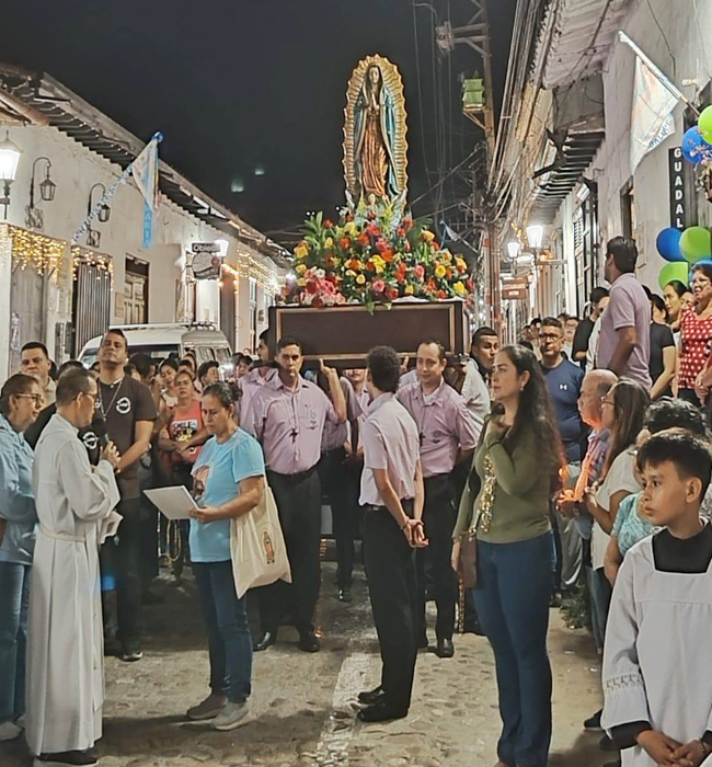 se celebra anualmente a nivel mundial y en Colombia el 12 de diciembre. En Girón, esta festividad se conmemora en la Parroquia de Santa Cruz y otras iglesias locales, mientras que la fiesta principal del municipio es la del Señor de los Milagros, que tiene lugar el 14 de septiembre. Celebración en Girón y mundial Día de la Virgen de Guadalupe: La fecha central de esta advocación mariana es el 12 de diciembre, conmemorando las apariciones de la Virgen María a San Juan Diego en el cerro del Tepeyac, México, en 1531.