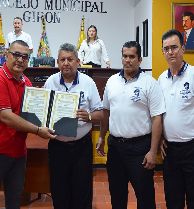 Reconocimiento a la Hermandad de Jesús Nazareno En la Casa de los Hermanos Nazarenos, el Concejo Municipal de Girón realizó un especial acto de reconocimiento a la Hermandad de Jesús Nazareno de la Parroquia San Juan Bautista, destacando su invaluable aporte a la tradición, la fe y la cultura de nuestro municipio. Durante la jornada se hizo entrega del Acuerdo Municipal “Por medio del cual se declara como Patrimonio Cultural e Inmaterial del Municipio de Girón a la Hermandad de Jesús Nazareno”, exaltando su legado y la importancia de preservar estas manifestaciones que fortalecen nuestra identidad gironesa.