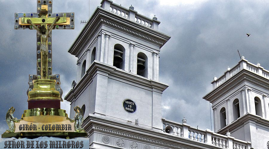 La historia del Señor de los Milagros de Girón se centra en la llegada de una imagen a una casa del municipio en 1740. Un joven forastero llegó a la vivienda de los esposos Francisco José Rodríguez y María Silva Aguilar ofreciéndoles una talla de Cristo a cambio de cuatro pesos de plata, que era todo lo que poseían. Tras la partida del joven y la compra de la imagen, se le consideró una figura milagrosa y en 1882, el Padre Peralta la trasladó a la parroquia de San Juan Bautista, convirtiéndose en el patrono de los gironeses.